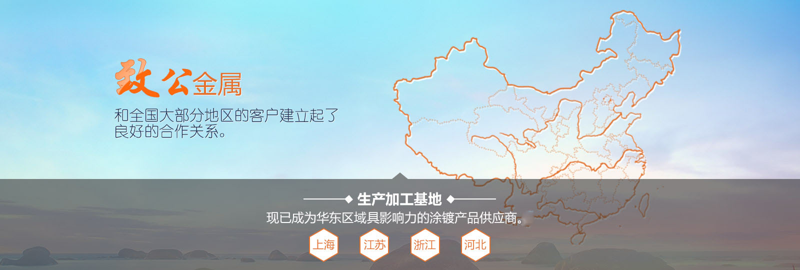 上海致公金属制品有限公司前身成立于2006年,经过十多年艰苦创业,现已成为华东区域具有影响力的涂镀产品供应商。公司总部位于上海 ,下辖上海、江苏、浙江、河北 四大生产加工基地,在江苏常州设有全资子公司,配套企业多为世界500强或行业龙头企业。公司立足上海,辐射华东、华南、华北,和全国大部分地区的客户建立起了良好的合作关系。公司2016年度实现涂镀产品累计销售22万吨,其中电镀锌耐指纹和镀铝镁锌产品均为我公司拳头产品,受到广大客户的认可。